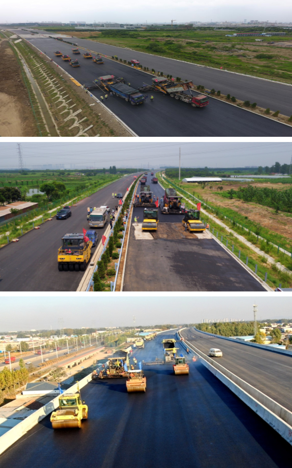2:高速路施工宜采用兩臺攤鋪機進行組合梯隊攤鋪,固定板攤鋪機組裝寬度不宜大于10m,伸縮式攤鋪機鋪筑寬度不宜大于7.5m,相鄰兩幅的寬度應重疊5~10cm左右。兩臺攤鋪機宜10~30m。當混合料供應及時,施工不發生離析現象時,也可采用一臺攤鋪機全寬度攤鋪。